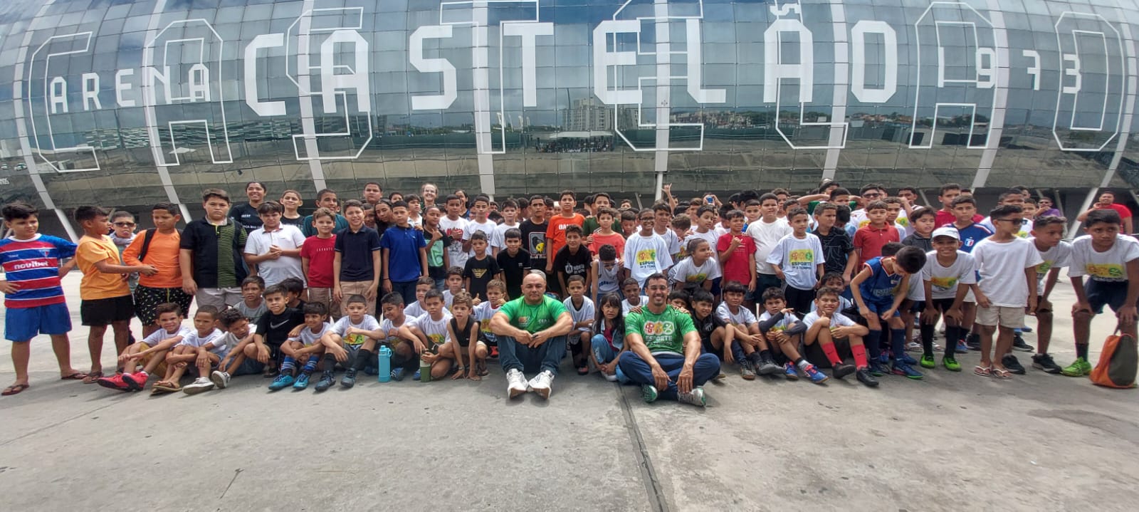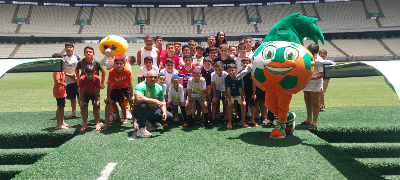 As duzentas crianças do Projeto Esporte em 3 Tempos tiveram uma manhã de muita diversão e conhecimento, na Arena Castelão, em homenagem ao Dia das Crianças. A brincadeira foi realizada nesta sexta-feira (31), atendendo as crianças dos núcleos: Cajazeiras, Geniba, Barreira, Caucaia e Campo AEC. A diversão contou com os mascotes: Areneco, Cearazita, Juba (Fortaleza) Tutuba (Ferroviário) e Vovô (Ceará).