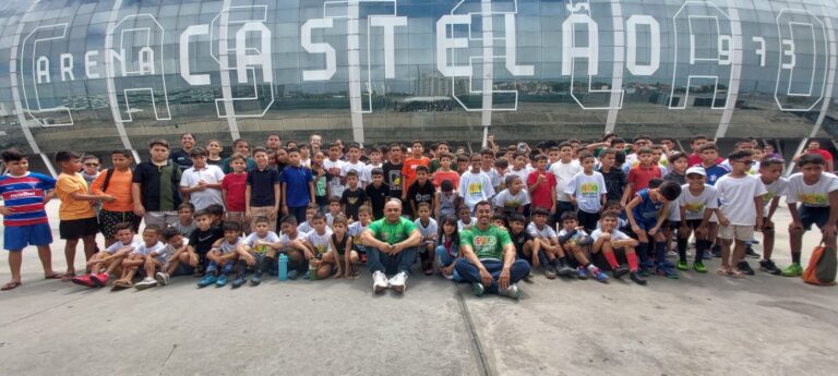 Como de costume, as crianças desceram para o gramado sintético e conheceram de perto o palco de grandes jogos e espetáculos. Eles ainda fizeram aquela pose nos bancos de reserva dos jogadores, alguns sonharam com um grande futuro nos gramados.