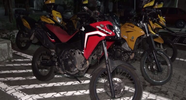 A moto usada pela dupla está com a documentação regularizada e tem placas em situação legal. Não há confirmação se o veículo pertence ao pai de um dos adolescentes ou a outra pessoa que possa tê-lo emprestado. O proprietário deverá ser identificado e comparecer à delegacia especializada com a documentação, para que o veículo seja restituído.