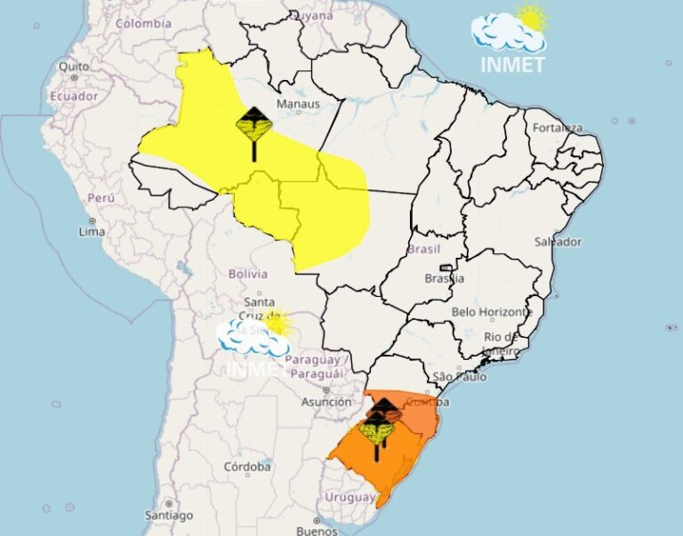 Estados da região Norte do país também estão em áreas de risco para chuvas intensas nas próximas horas. O alerta amarelo do Inmet, de “perigo potencial”, abrange áreas do norte mato-grossense, leste rondoniense, sudoeste paraense, centro-sul mato-grossense, centro amazonense, sudoeste amazonense, sul amazonense, sudoeste mato-grossense, norte amazonense, Madeira-Guaporé.