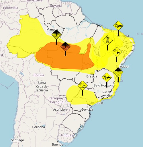 O Norte segue com chuvas constantes sobre o Amazonas, Rondônia, sul de Roraima e do Pará, com acumulados maiores ao longo da tarde. Já o Acre, Amapá e Tocantins ficam com o tempo mais seco, sem precipitações.
