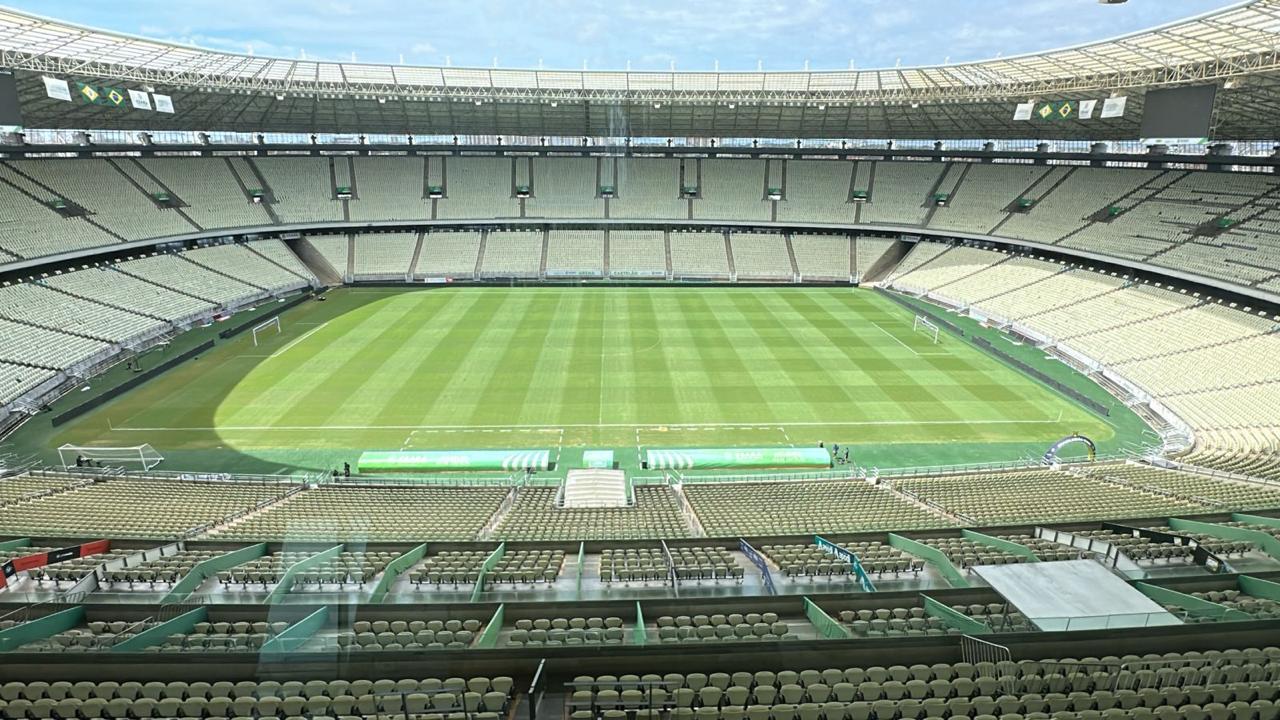 A Secretaria do Esporte (Sesporte) segue com o cronograma de revitalização do gramado da Arena Castelão, durante a pausa do Campeonato Brasileiro para o Super Mundial de Clubes da FIFA, entre os dias 14 de junho e 13 julho.