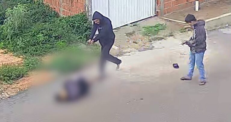 Nas imagens, é possível ver o momento em que o atirador chega ao local, montado em uma motocicleta. O alvo está sentado, recostado em uma cadeira, cochilando. O executor saca a arma e a aponta para o rosto do homem que dorme, sem conseguir fazer os disparos. Um cachorro, que está no local, chega a latir em meio à movimentação, no que o alvo acorda e se levanta da cadeira.