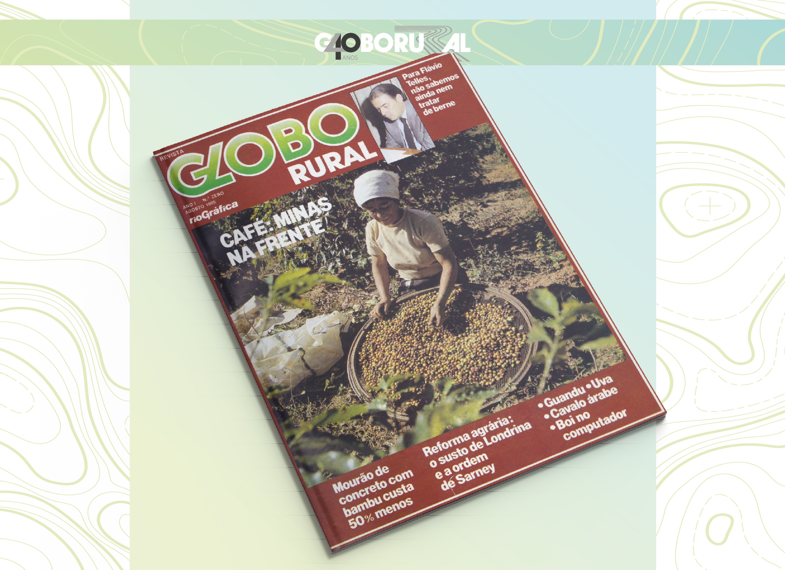 A edição número zero da Globo Rural, em agosto de 1985, apresentou aos leitores cinco possíveis capas para o início da sua trajetória de circulação. Acompanhado dos temas aração renovada, acerola, boi e ostras, o café foi descrito como “uma capa que a revista vai ter muitas vezes”.