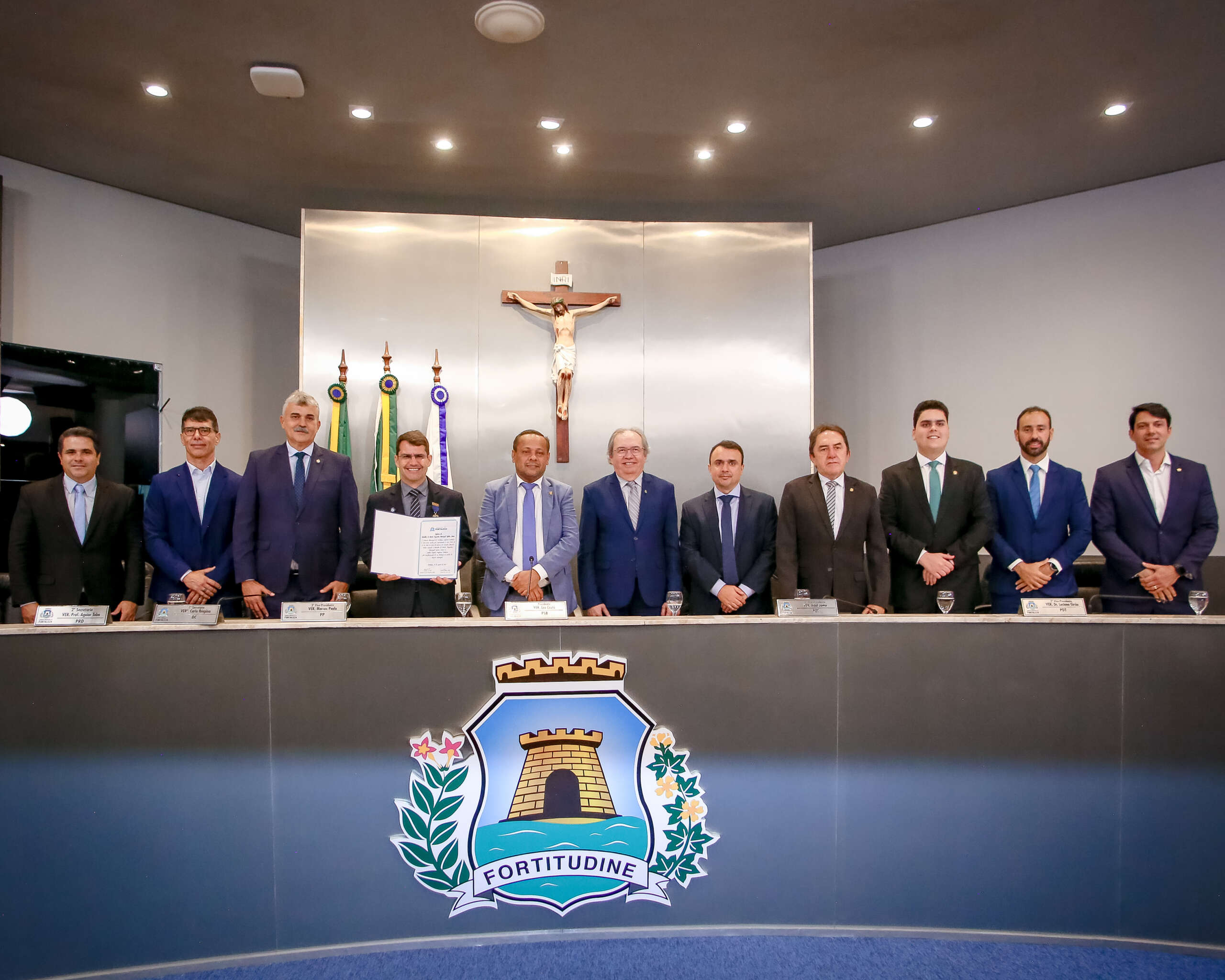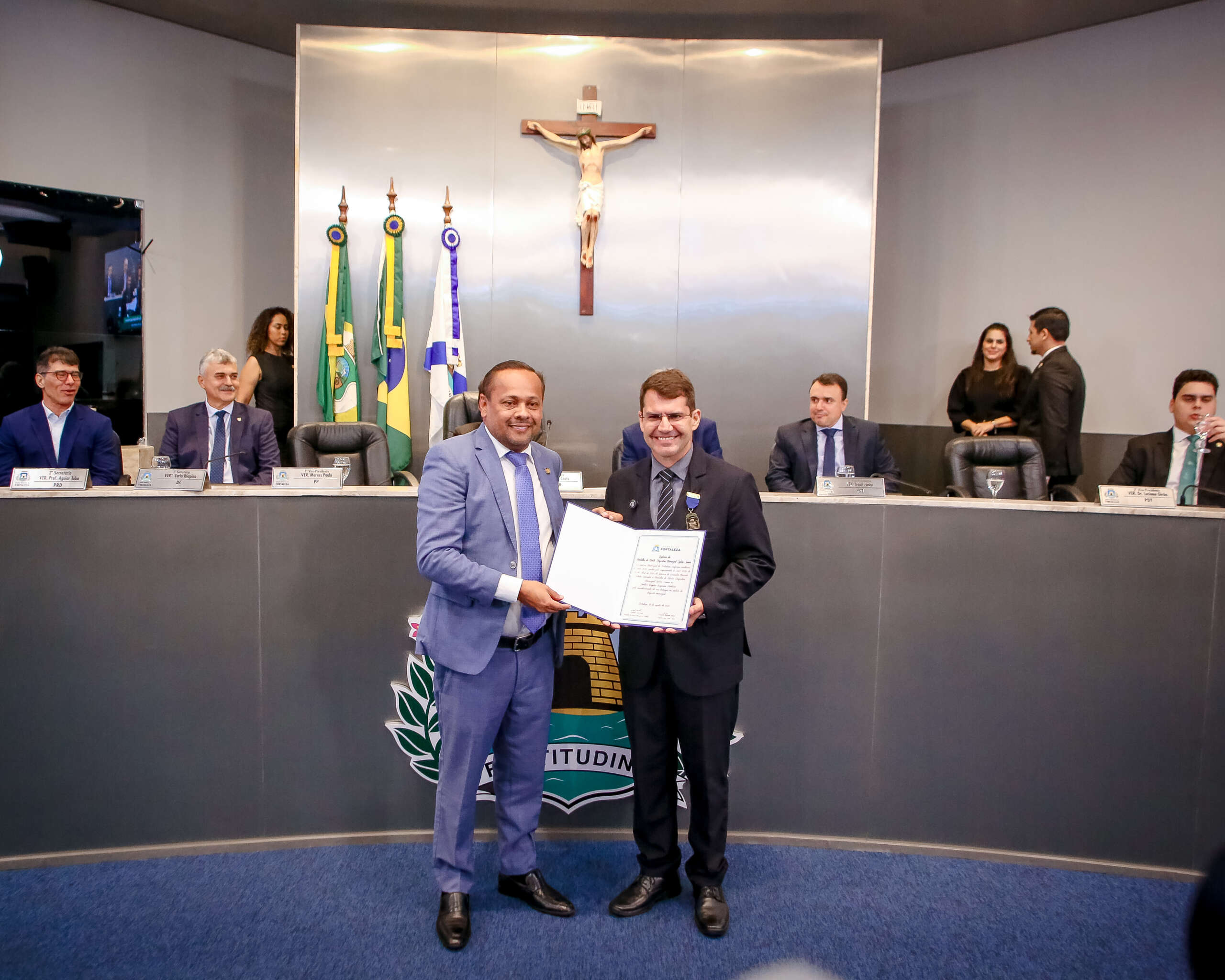 A mesa da cerimônia foi formada pelo propositor da sessão solene, o vereador Marcelo Tchela (Avante); pelo secretário de Estado Chefe da Controladoria e Ouvidoria Geral do Estado (CGE), Aloísio Carvalho, pelo chefe de Gabinete do Prefeito de Fortaleza e vereador licenciado, Eudes Bringel (PSD); pelo secretário adjunto do Esporte do Ceará; Igor Almeida; pelo secretário Executivo de Turismo, Igor Pinho; pelo primeiro-vice-presidente da Câmara de Fortaleza, Adail Junior (PDT), pelo superintendente do Departamento Nacional de Infraestrutura de Transportes (DNIT) no Ceará, Will Almeida; e pelo vereador René Pessoa (União).