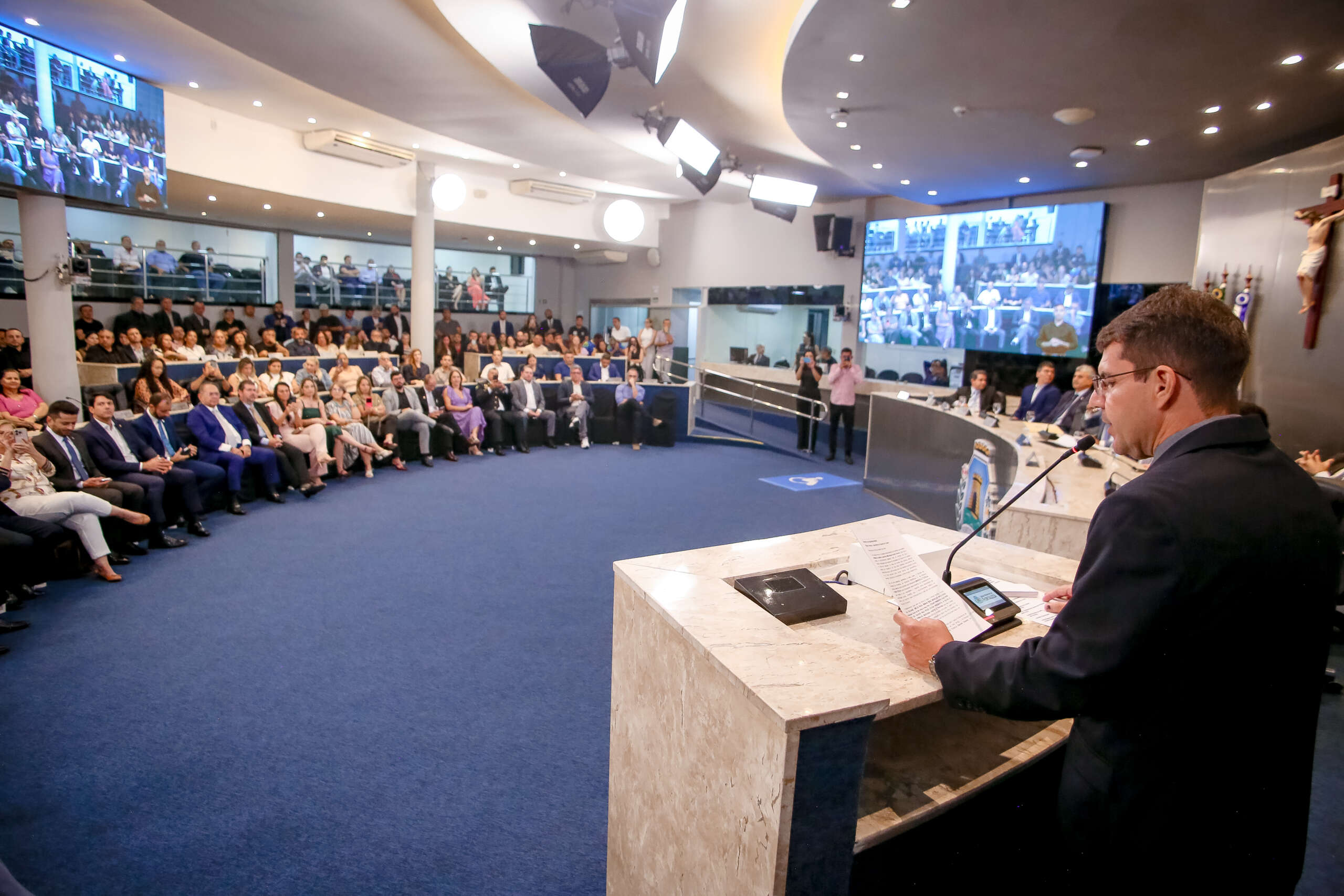 A Sessão Solene foi presidida pelo propositor da homenagem, vereador Marcelo Tchela (Avante), que enalteceu o desempenho do secretário na função. “Hoje eu tenho o secretário Rogério Pinheiro como um irmão. O secretário permanece na pasta por duas gestões devido a sua competência, mudou governador e ele continua na função com esse amor a secretaria, ao esporte e a Arena Castelão. Rogério está sempre empenhado em cuidar da arena e não é sem motivo, que o equipamento é palco de grandes eventos, e se Deus quiser será palco da abertura da Copa Mundial de Futebol Feminina. Essa homenagem é mais que merecida, você é um lutador um cara muito querido e que atende a todos”.