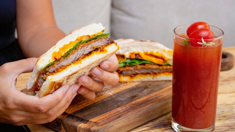 Corte o pão ao meio e aqueça levemente. Espalhe generosamente o aioli nas duas faces, disponha o filé empanado, acrescente o tomate e finalize com a rúcula. Sirva.