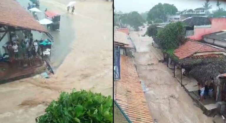 As fortes chuvas registradas nesta terça-feira (27) causaram alagamentos em diversos pontos do município de Jijoca de Jericoacoara, no litoral oeste do Ceará. Em imagens que circulam nas redes, é possível ver ruas tomadas por grandes volumes de água, com correnteza, impedindo o tráfego de pedestres e veículos.