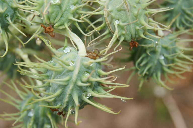 Conhecida por suas aplicações industriais, como a extração do óleo de rícino, a mamona representa um risco para áreas agrícolas. Além de se comportar como uma planta daninha em várias culturas, é considerada uma semente tóxica, comprometendo a comercialização dos grãos e exigindo rebeneficiamento da carga.