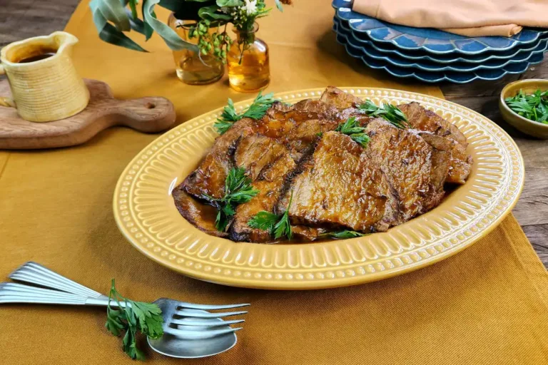 Corte o cupim em fatias finas de aproximadamente 1 cm de espessura. Regue com o molho e sirva a seguir.