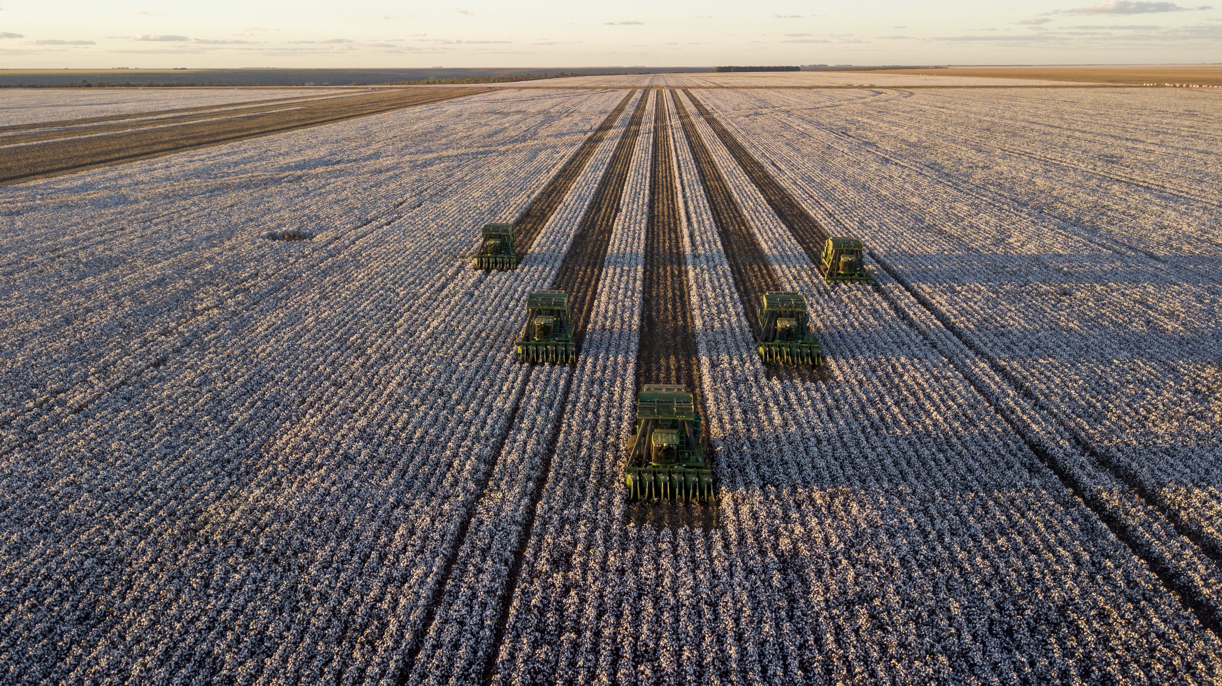 Outra inovação importante foi a adoção do cultivo em sequeiro aliado ao sistema de plantio direto. Hoje, 92% do algodão brasileiro é cultivado apenas com água da chuva. O plantio direto, que envolve o mínimo revolvimento do solo e a manutenção de cobertura vegetal, ajuda a preservar a umidade, reduzir o desperdício de água e aproximar a produção nacional da agricultura regenerativa.