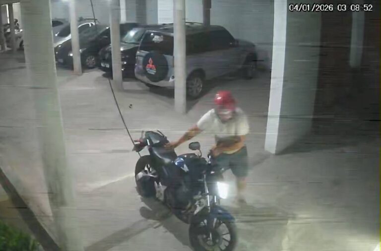 Segundo as informações, um dos suspeitos conseguiu retirar o portão de acesso dos trilhos, possibilitando a entrada no condomínio. Já no interior do local, ele furtou uma motocicleta modelo CB 300, ano 2025, que foi retirada empurrada até a área externa. Em seguida, o criminoso fugiu levando o veículo.