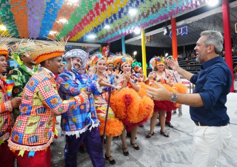 O governador Elmano de Freitas fez uma visita, nesta terça-feira (17), ao São João de Maracanaú – considerado a maior festa de São João do mundo. A visita foi acompanhada pelo prefeito da cidade, Roberto Pessoa, e pelo vice-prefeito e coordenador geral do evento, Gerson Cecchini. Na ocasião, o chefe do Executivo cearense conheceu a estrutura dos festejos, a Cidade Cenográfica e o Quadrilhódromo.