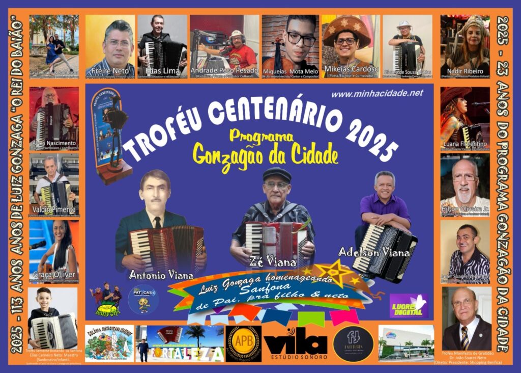 A iniciativa, transmitida pela web rádio minhacidade.net, reúne artistas, admiradores e representantes da cultura nordestina para homenagear nomes que contribuem para manter viva a tradição nas trilhas de Luiz Gonzaga. Ao todo, 13 personalidades serão agraciadas com o Troféu Centenário nesta edição.