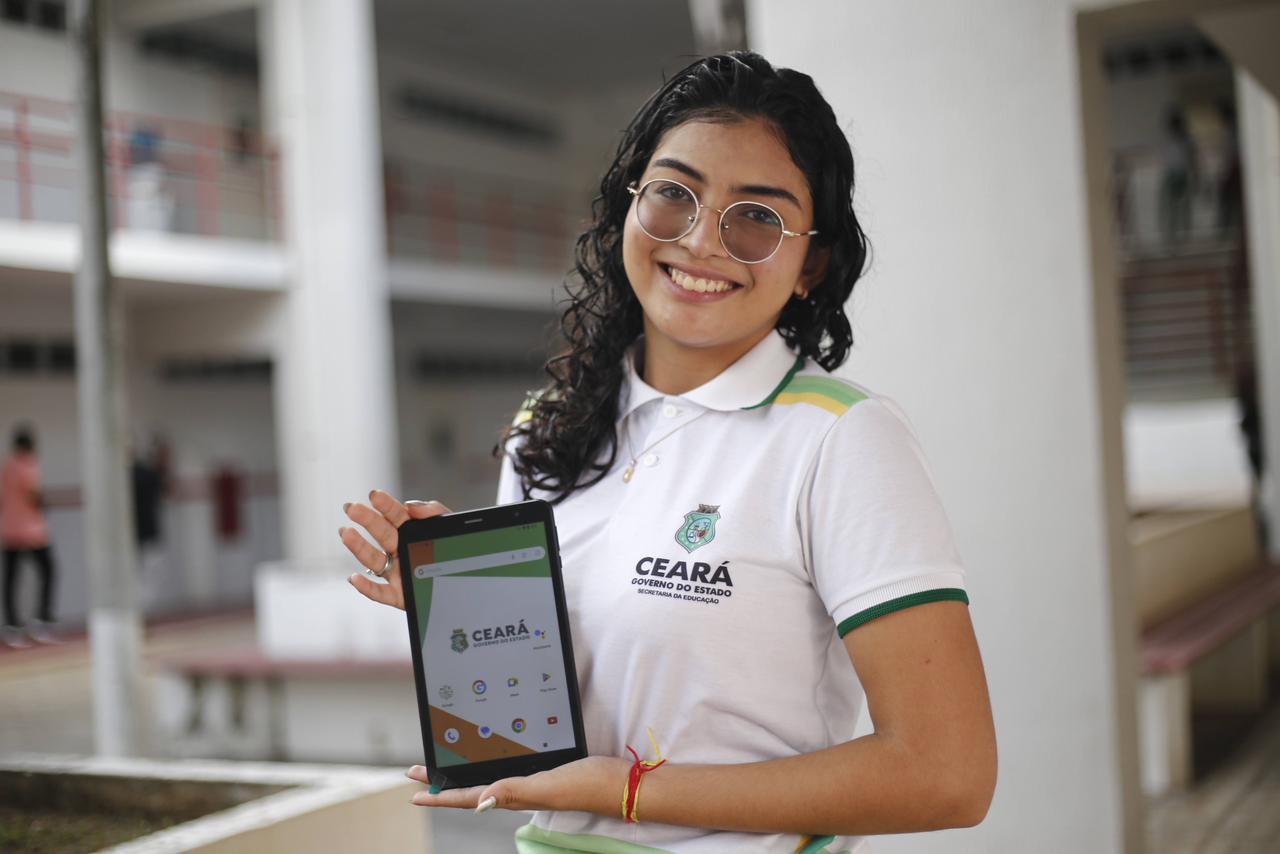 Para a estudante Ana Vitória, do 2º ano da EEEP Antônio Tarcísio Aragão, ao investir em educação, o Governo do Ceará alimenta o sonho de jovens como ela, que deseja cursar Medicina e atuar na área pediátrica. O tablet que ela recebeu do Governo do Ceará vai auxiliá-la na busca desse objetivo.