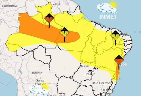 No Norte, há risco de temporais no norte do Amazonas, centro-sul e noroeste do Pará e grande parte de Roraima. Enquanto isso, o leste do Amapá e extremo nordeste do Pará, ficam com tempo firme.