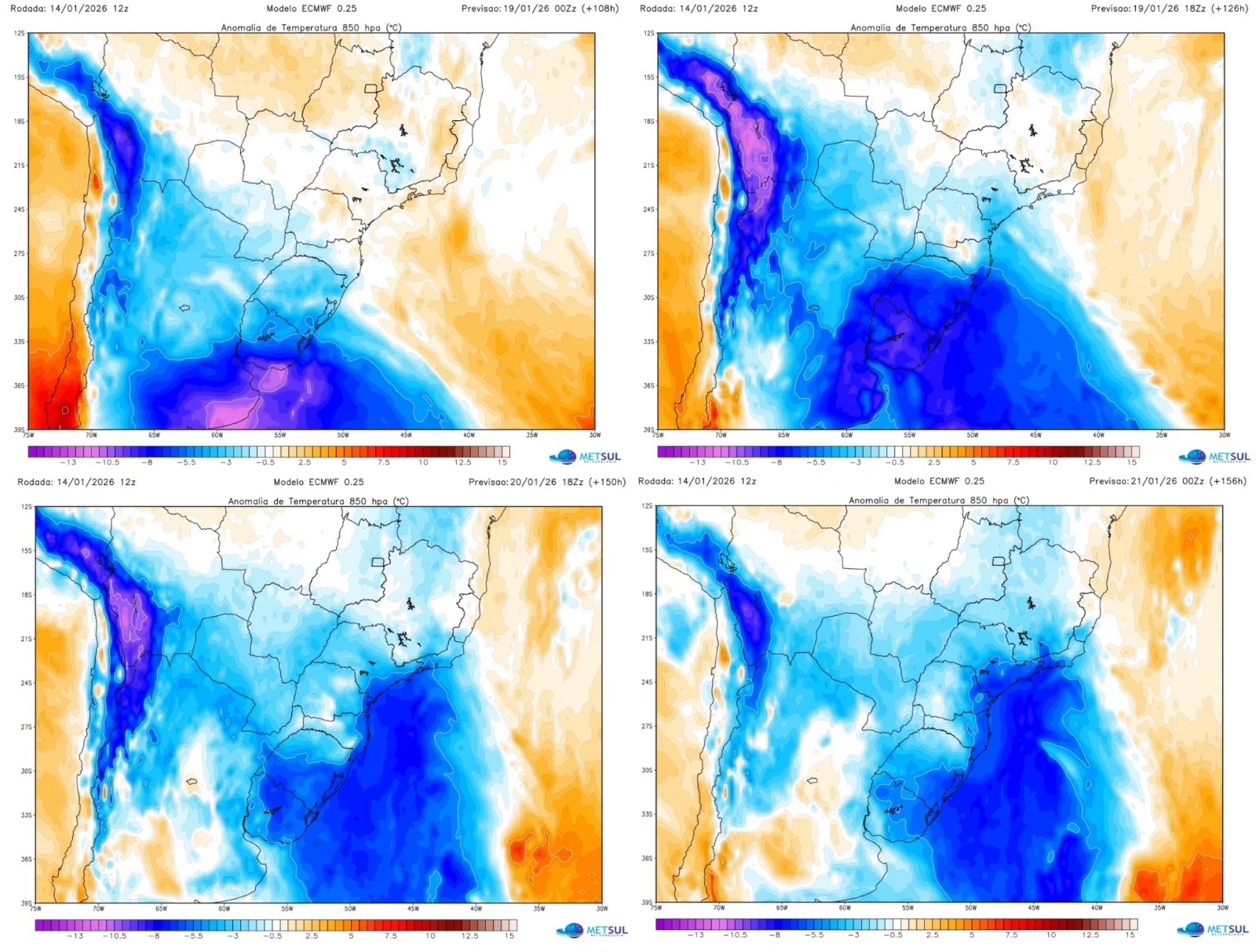 Esse resfriamento começa a se desenhar no Sul do Brasil ainda no domingo (18), com a entrada de uma massa de ar frio pelo Rio Grande do Sul, avançando ao longo da faixa leste da região Sul no início da semana. Embora não alcance a mesma intensidade do episódio anterior, trata-se da segunda incursão de ar frio mais relevante de 2026, capaz de derrubar as temperaturas durante a madrugada, gerar mínimas baixas em áreas serranas e favorecer a ocorrência pontual de geada, especialmente em Santa Catarina.