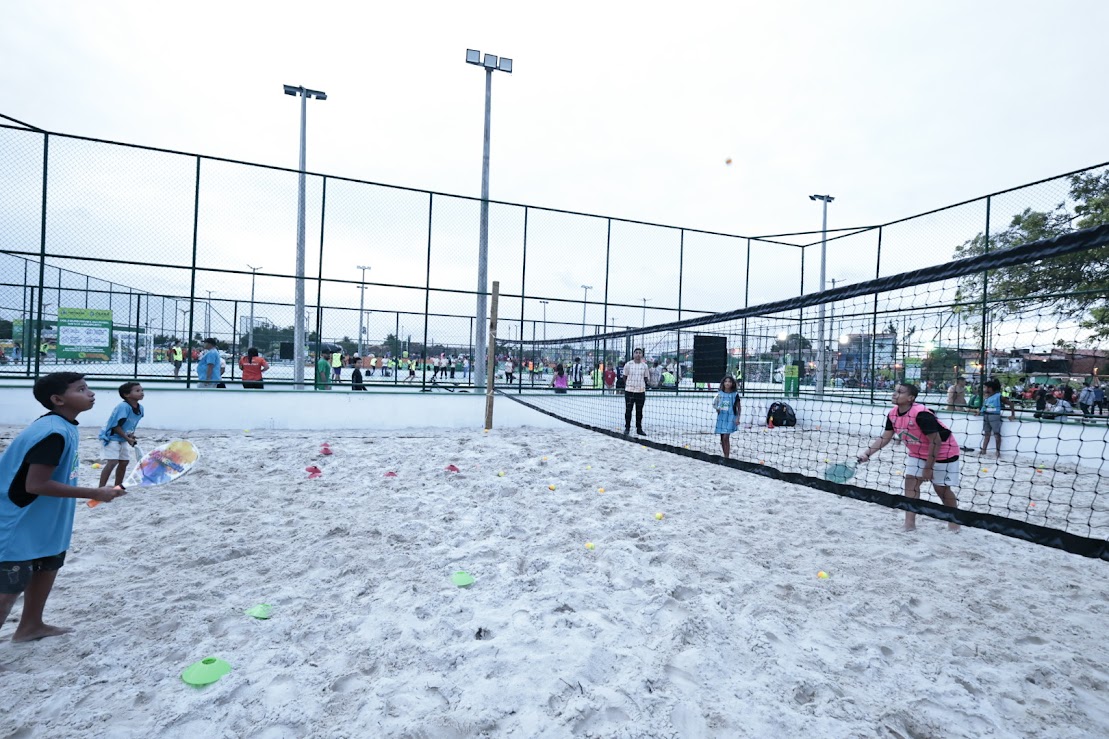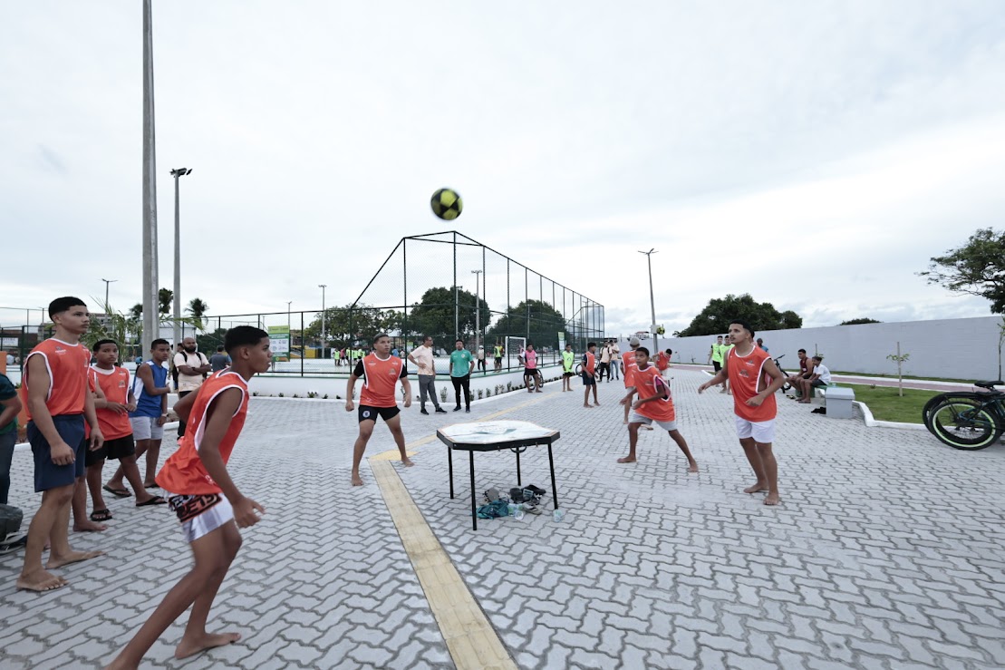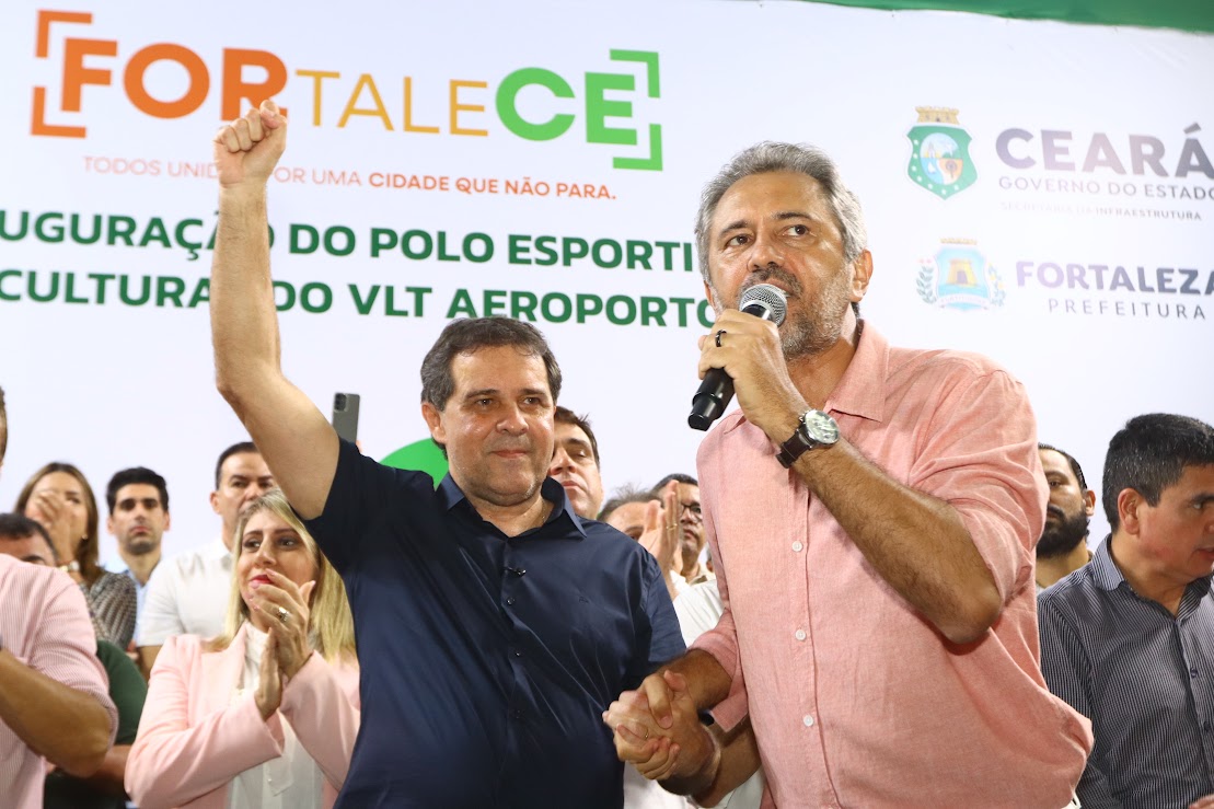 Onde antes havia um terreno baldio tomado pelo lixo, agora funciona a segunda maior praça de Fortaleza. O FORtaleCe, parceria entre o Governo do Ceará e a Prefeitura de Fortaleza, inaugurou, nesta quinta-feira (12), o Polo Esportivo e Cultural do VLT Aeroporto. Participaram da inauguração o governador Elmano de Freitas, o prefeito de Fortaleza, Evandro Leitão, o secretário-chefe da Casa Civil, Chagas Vieira, e outras autoridades.