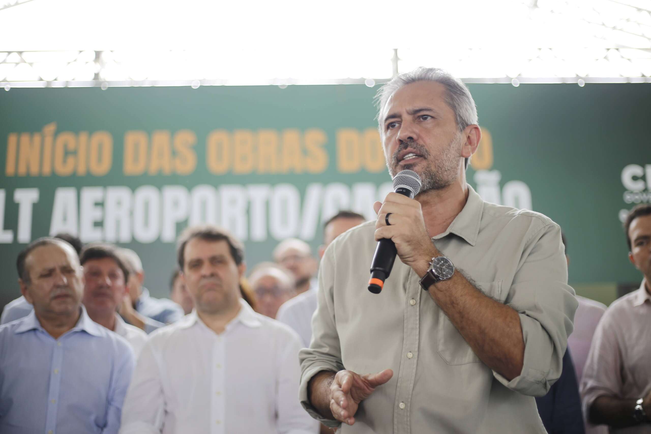 Mais mobilidade para os cearenses. O governador Elmano de Freitas assinou, nesta quinta-feira (24), ordem de serviço para o início das obras da linha Aeroporto-Castelão do Veículo Leve sobre Trilhos (VLT). A construção irá adicionar duas estações para a malha metroviária de Fortaleza: no Condomínio Espiritual Uirapuru (CEU) e no Castelão. Com investimento de R$ 180 milhões, a linha Aeroporto-Castelão terá capacidade de atender até 35 mil pessoas por dia e diminuirá o tempo de percurso entre os dois equipamentos para 12 minutos.