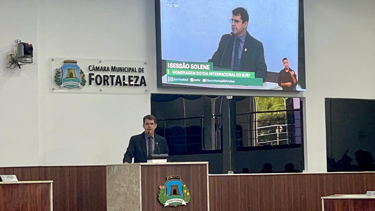 Em sessão solene realizada, nesta terça-feira (17), na Câmara Municipal de Fortaleza (CMFor), o secretário do Esporte do Ceará, Rogério Pinheiro, prestigiou a celebração do Dia Internacional do Surfe, no Plenário Fausto Arruda.