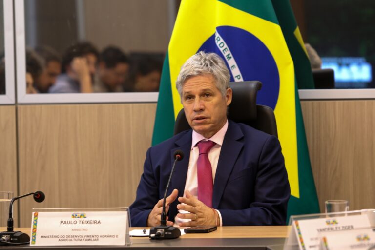 O ministro do Desenvolvimento Agrário, Paulo Teixeira, afirmou que o compromisso do governo federal é tentar diminuir as tarifas aplicadas pelos Estados Unidos aos produtos brasileiros, atualmente em 50%, e, caso não seja atendido pela Casa Branca, intensificar a negociação para incluir mais itens na lista de exceção do tarifaço.