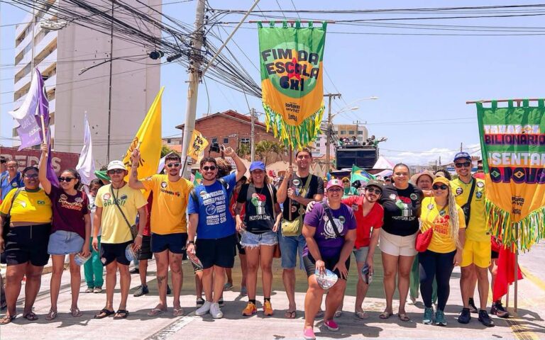 Na manhã deste domingo (7), data em que se comemora a Independência do Brasil, manifestantes tomaram as ruas da Praia do Futuro, em Fortaleza, durante o tradicional Grito dos Excluídos. Realizado há mais de 30 anos em diversas cidades do país, o ato propõe uma reflexão crítica sobre os rumos da nação, trazendo à tona pautas sociais e ambientais invisibilizadas nos desfiles oficiais. Na capital cearense, o protesto teve como foco o fim da escala de trabalho 6×1, a luta por moradia e críticas à instalação de uma usina de dessalinização na região.