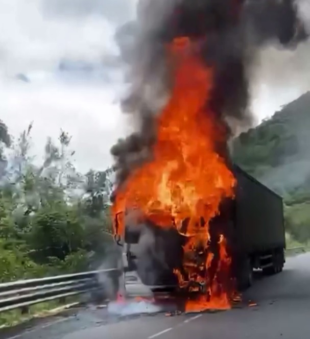 Imagens que circulam nas redes sociais mostram o momento em que o caminhão queima, com labaredas volumosas tomando o veículo, no meio da rodovia. As imagens ainda mostram o trabalho do Corpo de Bombeiros, com o caminhão já consumido pelo fogo, carcaça exposta.