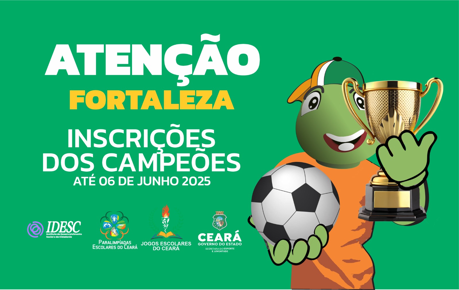A Secretaria do Esporte (Sesporte) está com inscrições abertas dos Jogos Escolares do Ceará para os campeões de Fortaleza, até o dia 06 de junho, no site da secretaria.