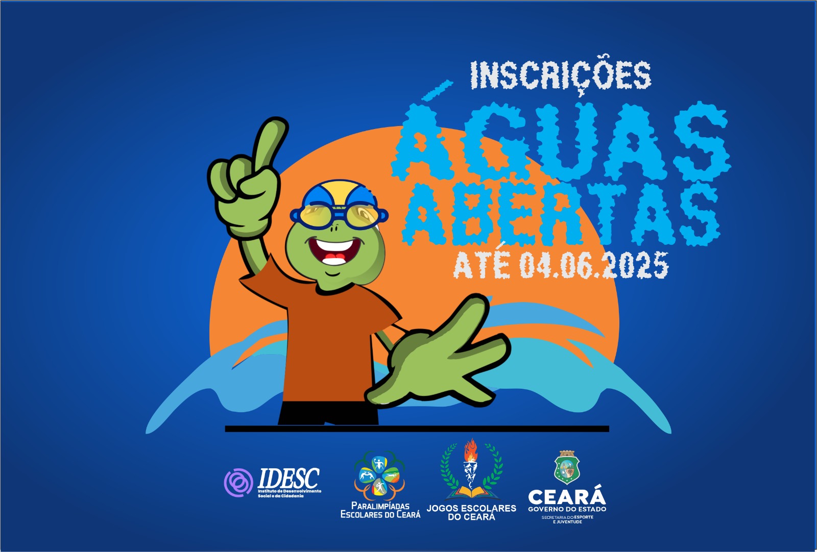 A Secretaria do Esporte (Sesporte) recebe até o dia 4 de junho (quarta-feira) as inscrições da modalidade de Águas Abertas dos Jogos Escolares do Ceará, na categoria 15 a 17 anos, no site da secretaria.