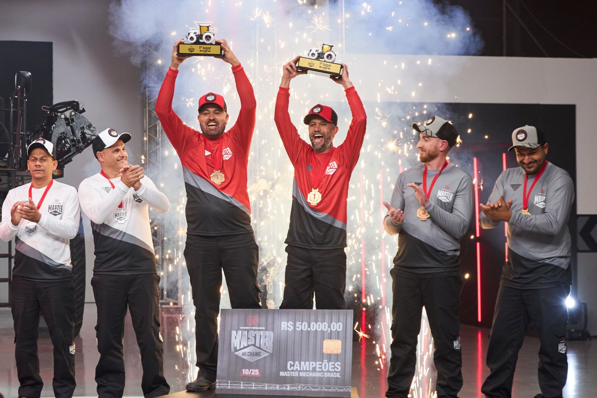 Após dias intensos, com provas que exigiram conhecimento técnico, agilidade e capacidade de diagnóstico em situações reais do campo, Gerciandro Borges, de Jataí (GO), e Paulo Ricardo Mariano, conhecido como Laranjinha, de Itaú de Minas (MG), conquistaram o primeiro lugar no Master Mechanic Brasil. O reality show, promovido pela Massey Ferguson, elege os melhores mecânicos agrícolas do país e já está em sua terceira temporada. A dupla vencedora recebeu o prêmio de R$ 50 mil e um troféu exclusivo.