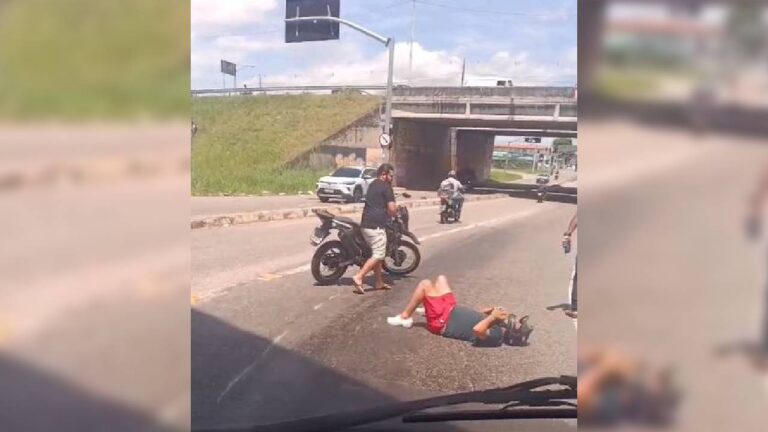Um motociclista sofreu um acidente na manhã desta terça-feira (5) ao perder o controle da moto na descida do viaduto do Aeroporto, em direção ao bairro Serrinha, em Fortaleza. O momento foi flagrado por um motorista que passava pelo local e compartilhado nas redes sociais, onde rapidamente viralizou e gerou indignação entre internautas.