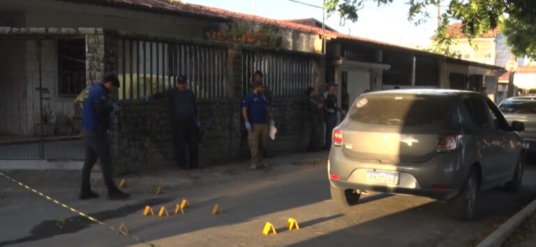 De acordo com informações colhidas no local, o homem estava parado na via quando foi abordado por uma dupla em uma moto. Câmeras de segurança registraram a aproximação dos suspeitos, que conversaram brevemente com a vítima antes de receberem um volume, possivelmente uma bolsa. Logo em seguida, o garupeiro sacou uma pistola e efetuou ao menos 12 disparos, conforme indicam as marcações feitas pelos peritos da Perícia Forense do Ceará (Pefoce) no asfalto.