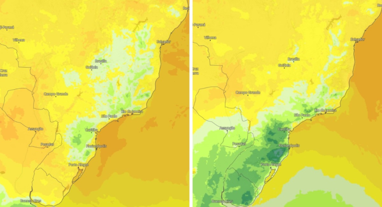 O ponto de virada ocorrerá na segunda-feira (19), quando a frente fria costeira se aproxima do Sudeste e ganha intensidade. “As chuvas serão fortes e abrangentes, atingindo todos os estados da região, incluindo Espírito Santo, e trazendo tempestades localizadas”, alerta Rosso. Com o avanço do sistema frontal, o calor intenso dará lugar a temperaturas mais amenas, com máximas entre 20 °C e 30 °C na maior parte da Região Sudeste.
