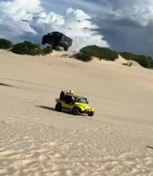 A picape que “voou” de uma duna no litoral do Ceará e viralizou na internet ganhou um novo dono: Alisson Sávio, criador de peixes da cidade de Russas. O veículo, que pertencia ao empresário Valécio Granjeiro, foi repassado ao amigo por cerca de R$ 250 mil, valor equivalente a metade do preço de uma unidade nova, que atualmente custa R$ 490 mil.