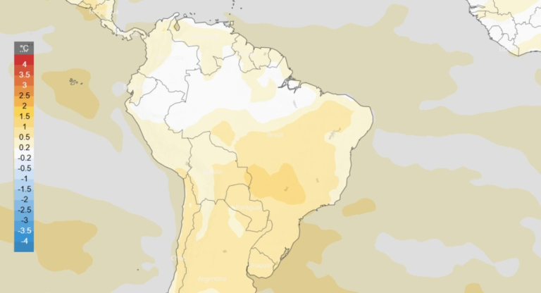Centro-oeste: A condição de chuva é semelhante ao Sudeste, com a previsão indicando pouca precipitação nos próximos 31 dias. As temperaturas devem ficar acima da média.