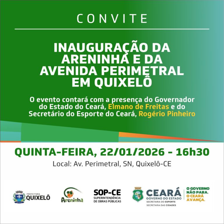 Na próxima quinta-feira (22), o Governo do Ceará entrega à população de Quixelô a obra de recuperação da Avenida Perimetral da cidade e a areninha do distrito de Vila Antonico. A solenidade, que ocorre às 16h30, contará com a presença do governador Elmano de Freitas e do prefeito Adil Júnior. O investimento do Estado nas duas obras foi de R$ 2.582.086,41.