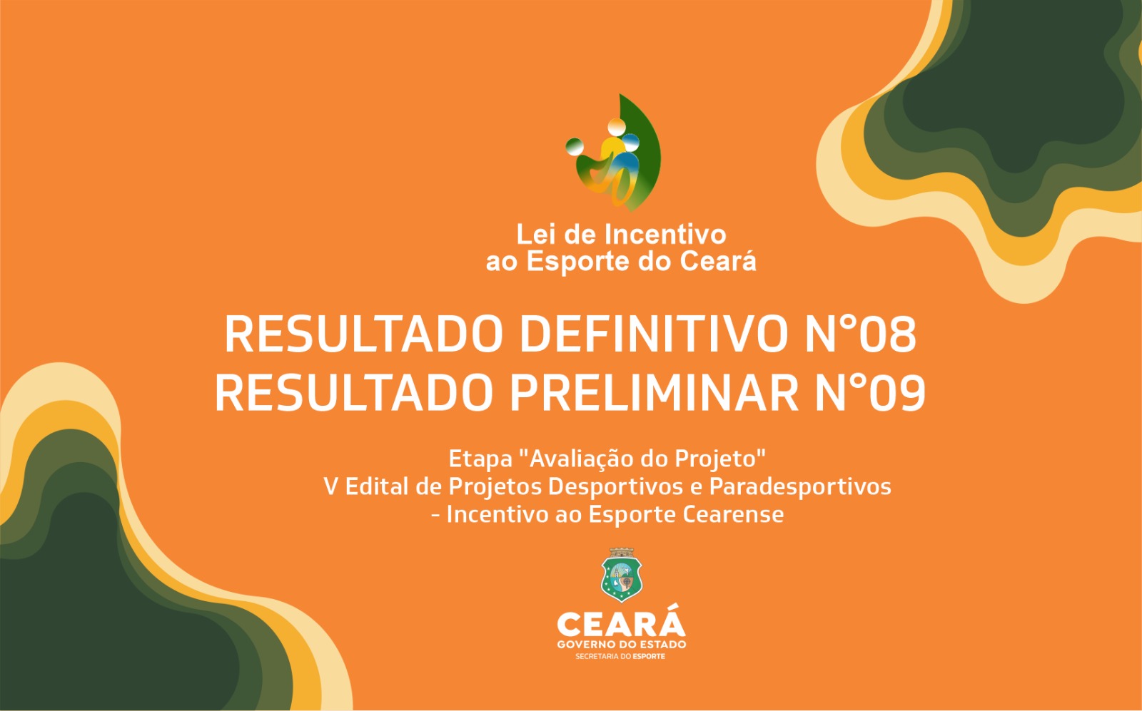 A Secretaria do Esporte do Estado do Ceará divulga, nesta terça-feira (16), o Resultado Definitivo nº 08 e o Resultado Preliminar nº 09 da etapa “Habilitação da Inscrição” do V Edital de Projetos Desportivos e Paradesportivos – Incentivo ao Esporte Cearense.