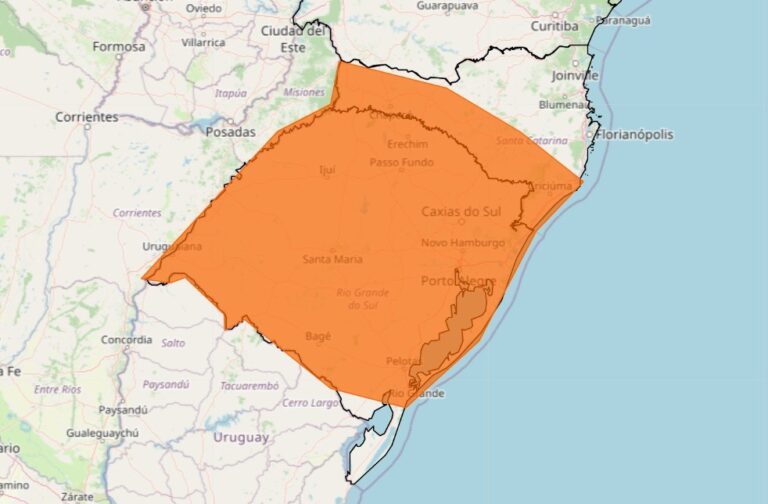 O Instituto Nacional de Meteorologia (Inmet) segue com alerta laranja de “perigo para chuvas intensas” ativo desde quarta-feira (18/6) e com vigência até 3h de sábado (21/6). O aviso abrange todo o Rio Grande do Sul e até partes de Santa Catarina.