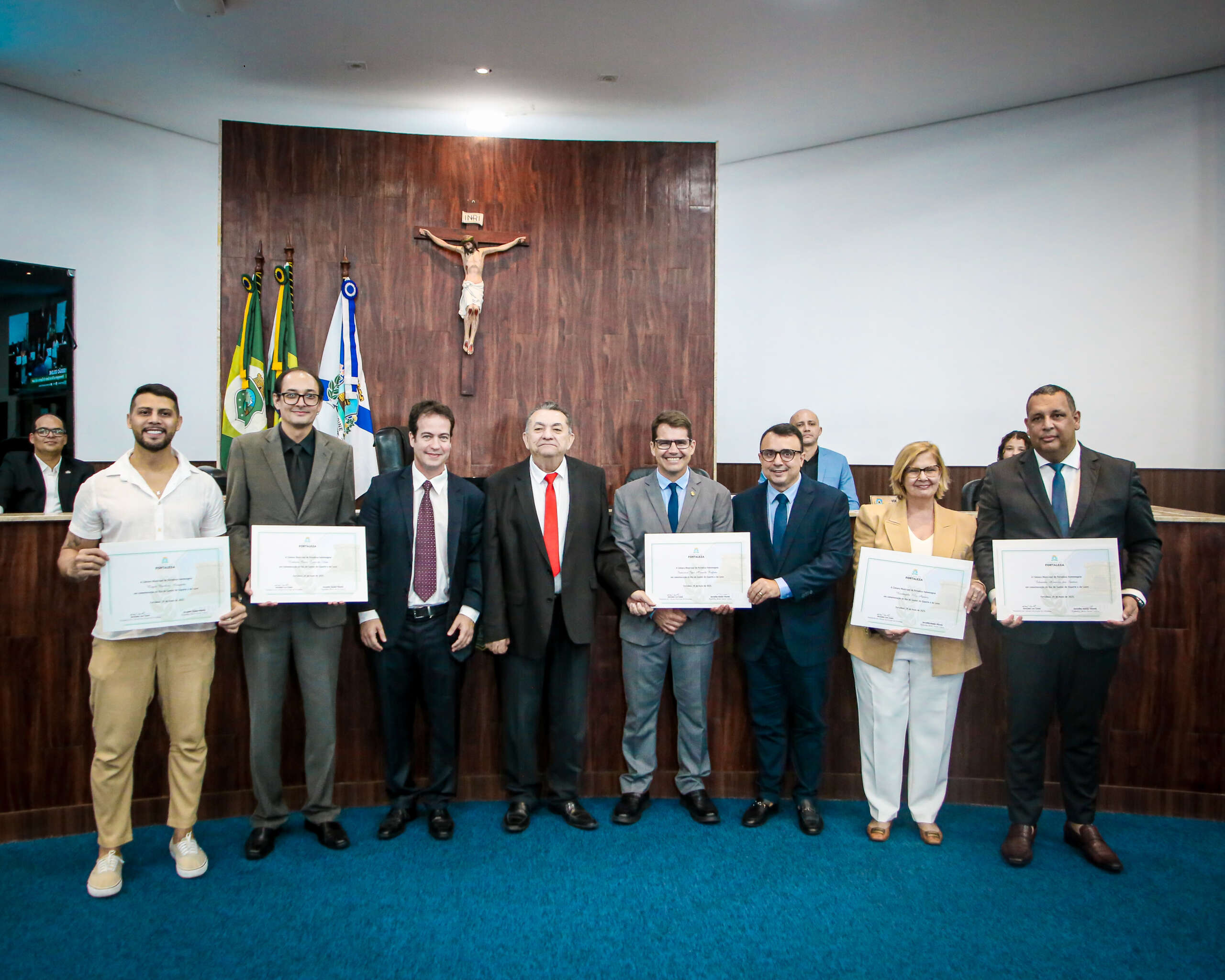 Nesta quinta-feira (29), secretários e colaboradores da Secretaria do Esporte (Sesporte) foram homenageados em comemoração ao Dia do Gestor do Esporte e do Lazer, na Câmara Municipal de Fortaleza, requerimento de autoria do Vereador Doutor Vicente.