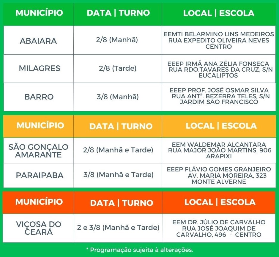 Os atendimentos são destinados aos candidatos com inscrições aprovadas nas edições 2023 e 2024 do programa. Em municípios que possuem toda a estrutura necessária para o atendimento, com autoescolas, clínicas credenciadas e postos do Detran, os candidatos podem realizar o agendamento no dia e horário disponíveis, por meio do site do Detran (www.detran.ce.gov.br).
