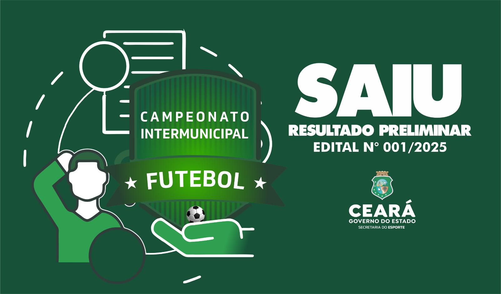 A Secretaria do Esporte do Estado do Ceará (Sesporte) divulga nesta quinta-feira (29), o resultado preliminar do Edital Nº 01/2025 que diz respeito ao processo de Chamamento Público para selecionar a entidade executora do Campeonato Intermunicipal de Futebol.