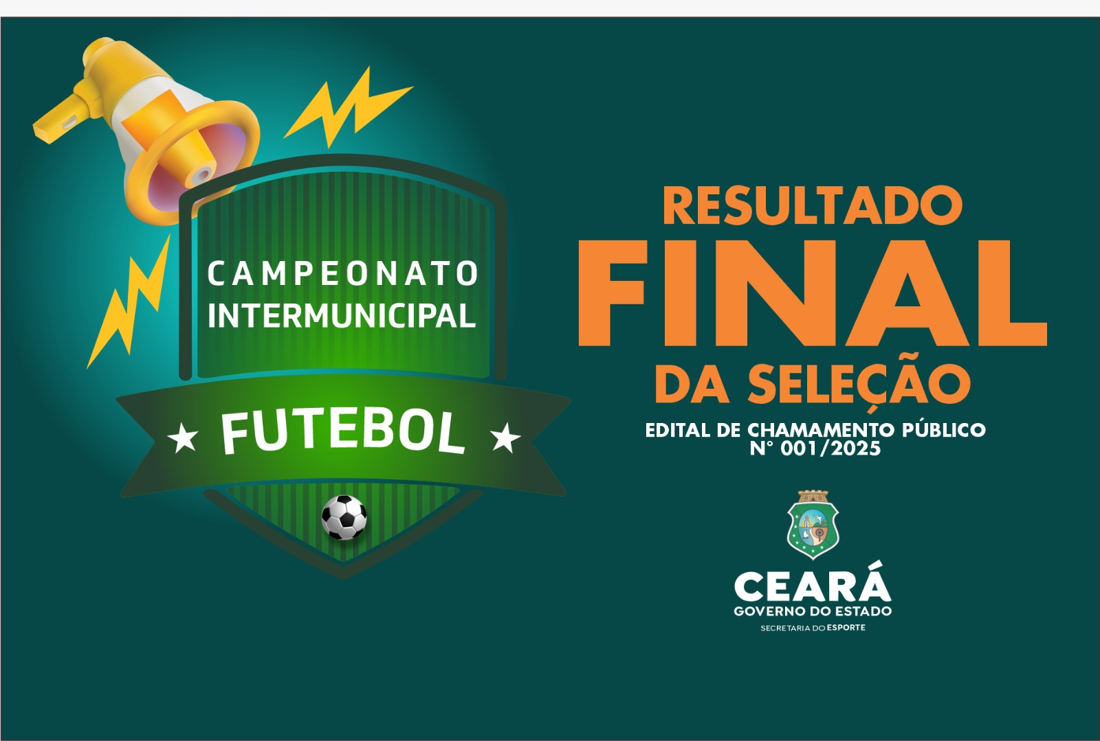 A Secretaria do Esporte (Sesporte) divulga, nesta segunda-feira (16), o termo de ratificação e homologação do chamamento público Nº 001/2025 referente ao Projeto Campeonato Intermunicipal de Futebol.