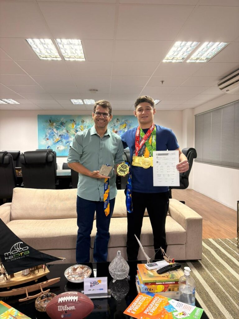 A Secretaria do Esporte (Sesporte) entregou, na quinta-feira (18), por meio do titular da pasta, Rogério Pinheiro, passagens aéreas internacionais, para atleta cearense de Jiu-Jitsu representar o estado do Ceará em competição mundial.