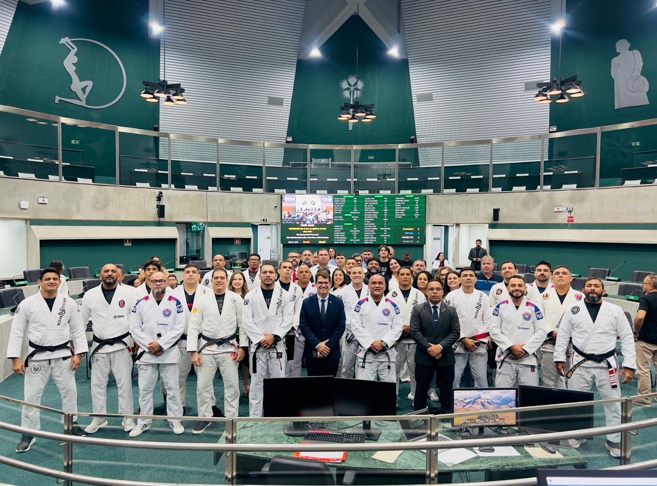 Representando o Governador do Ceará, o secretário do Esporte, Rogério Pinheiro, participou na Assembleia Legislativa do Estado do Ceará (Alece), na quarta-feira (19), da sessão solene que celebrou os 30 anos de fundação da equipe Nova União Brazilian Jiu-Jitsu (NUBJJ).