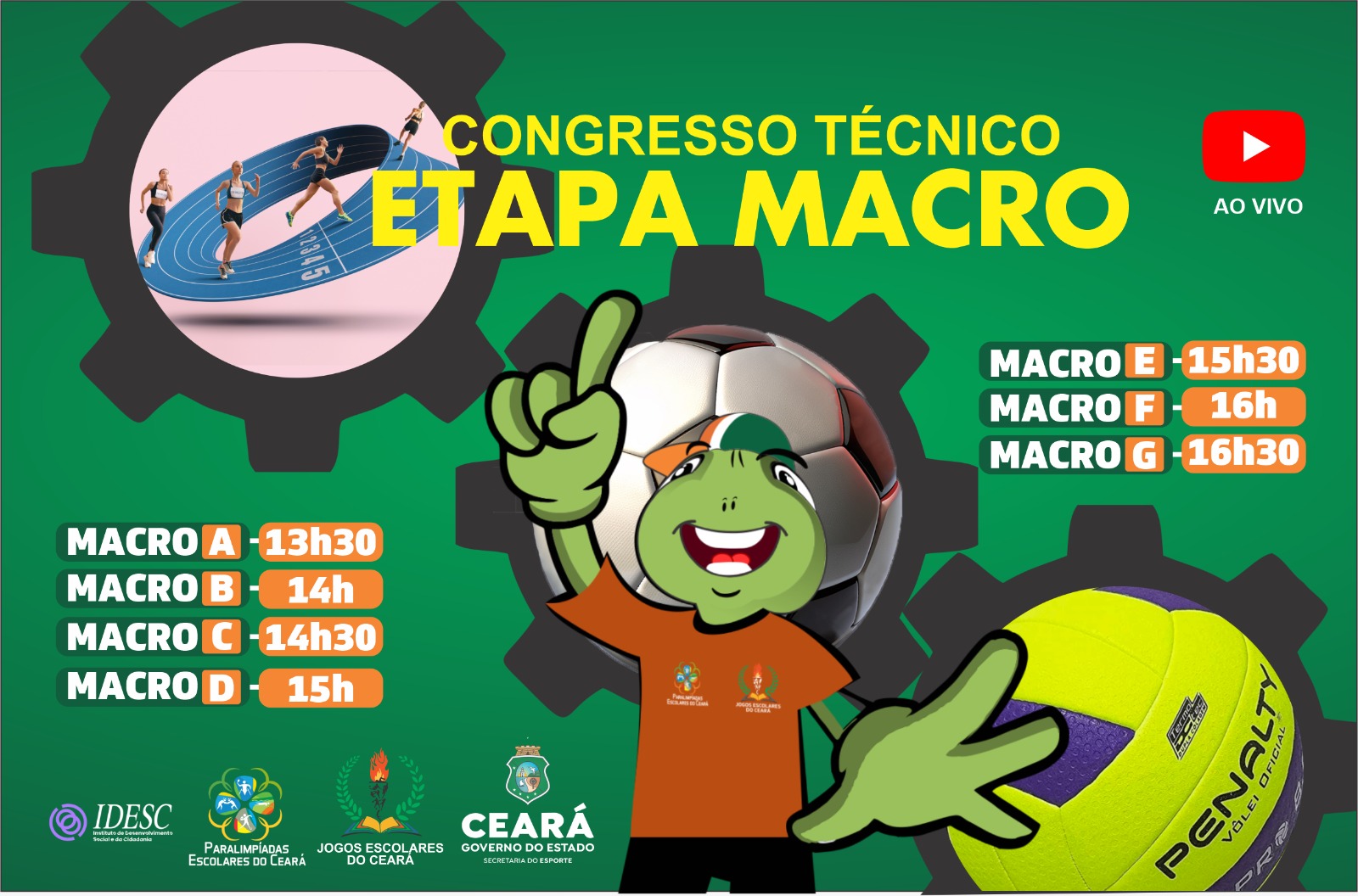 A Secretaria do Esporte do Estado do Ceará (Sesporte) realiza, na terça-feira (20), a partir das 13h30, o Congresso Técnico dos Jogos Escolares da etapa MACRO, das modalidades coletivas.