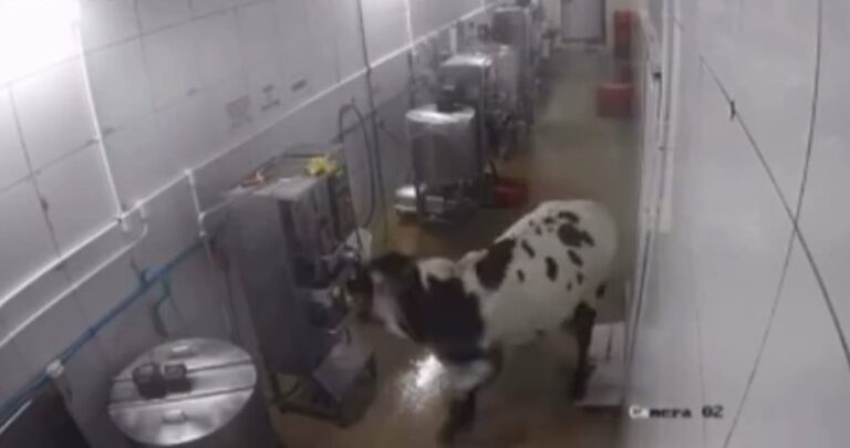 Nas imagens, é possível ver a vaca andando por um dos corredores da fábrica em disparada, fazendo com que os trabalhadores tivessem que fugir do animal para se proteger. Não houve registro de feridos e a vaca conseguiu deixar o local.